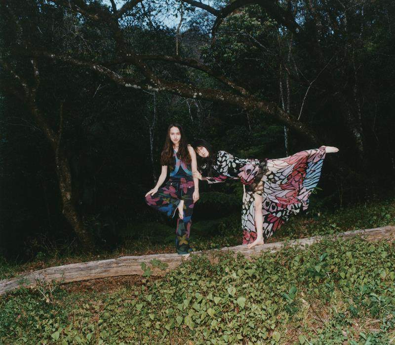 李林妲:印花牛仔连体裤、蝴蝶流苏项链均为Chanel范靖涵:黑色上衣拼接印花连衣裙、印花衬衫均为Chanel 白色背心、印花马甲、印花廓形半裙、金色手链均为Louis Vuitton串珠项链私人物品 黑色上衣拼接印花连衣裙、印花衬衫、蝴蝶流苏项链、黑色高跟鞋均为Chanel 雨林的味道 拍摄时正值早春三月,地点定在李林妲父母二十年前买下准备做雨林修复的热带雨林保护区。再没有