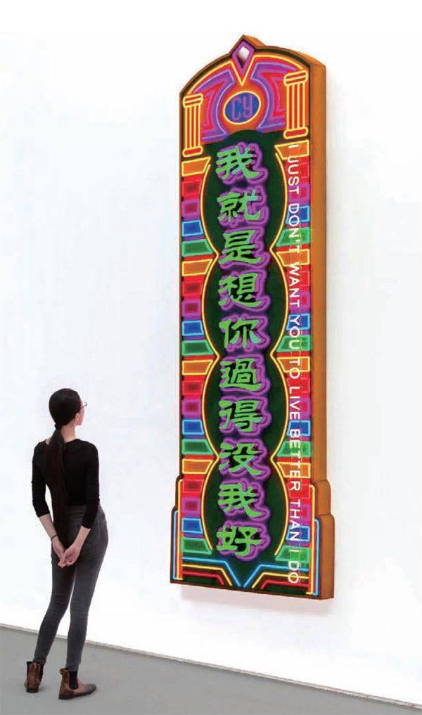 曹雨 《我就是想你过得没我好》,2021 调频霓虹灯招牌 289×105×10cm 曹雨:路过人间 展期:至8月15日 地点:北京麦勒画廊 曹雨早期创作从自身个体经验出发,而近期作品则单刀直入,试图一针见血地深入探讨并剖析人性这一终极命题,围绕活着、相遇与别离等主题进行了极具个人色彩及痛快犀利的艺术诠释。曹雨的创作语言一直以来都尖锐、怪异荒诞、幽默且大胆,“女权主义