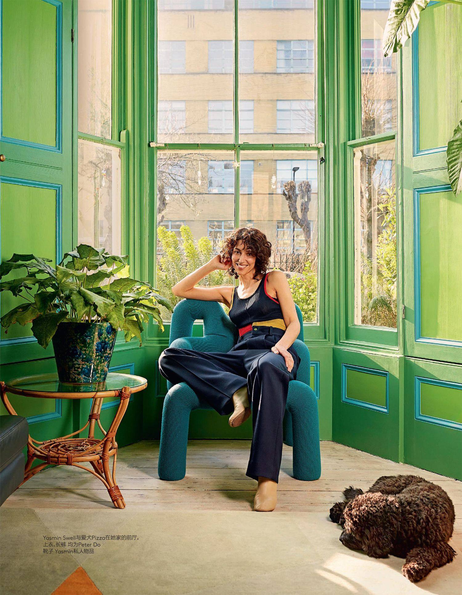 紧身上衣Zhong Zixin;无袖风衣Mmaison Sans Titre;长袖风衣C+Plus Series;马甲Max Mara 毛衣、大衣、腰带、项链、耳环均为Fendi;金色耳夹私人物品 上衣Robert Wun 古董羽毛领皮外套Yohji Yamamoto 1991 AW;绿色衬衣M Essential 上衣、裤子均为Samuel Gui Yong;羽毛腰带Dries Van
