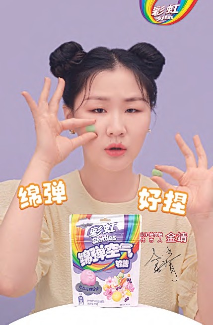 你见到萌娃肉乎乎的小脸蛋,会不会有想去捏一捏的冲动呢?最近,彩虹糖推出的一款新产品——绵弹空气软糖,就抓住了这种“捏脸”的触感,切合产品绵弹的特性,塑造了一个好玩的概念:像脸一样好捏的软糖。 前有奥利奥的“舔一舔、扭一扭、泡一泡”,后有彩虹糖的“捏一捏”。通过解锁“正确”食用的动作,一来凸显产品特色,二来塑造“好吃又好玩”的产品记忆,短时间内将新品打入用户心智。为了直观化该概念,