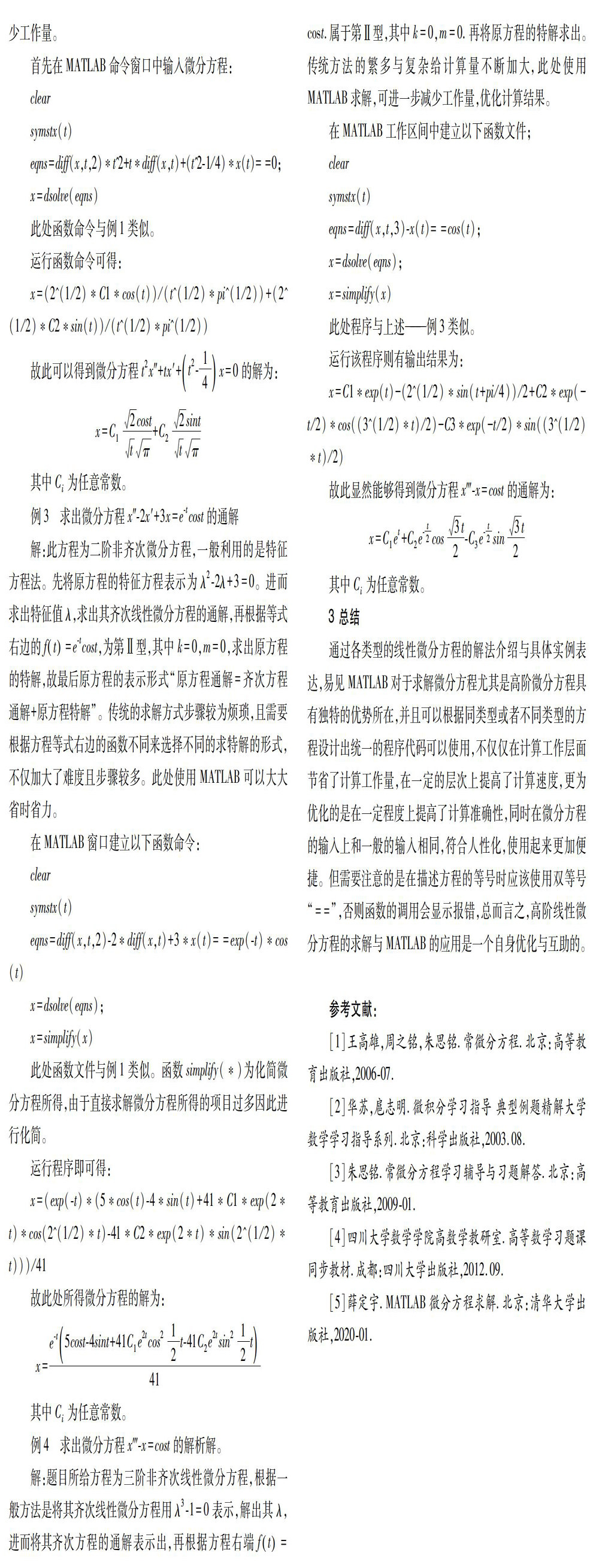 高阶线性微分方程在各个领域有着较为广泛的应用,对于一类的高阶线性微分方程存在简单的求解方法。本文结合高阶线性微分方程的解法与MATLAB的编程功能展示其简便的运算过程,提高高阶线性微分方程的求解速率,对高阶线性微分方程的应用推广有一定的意义。
