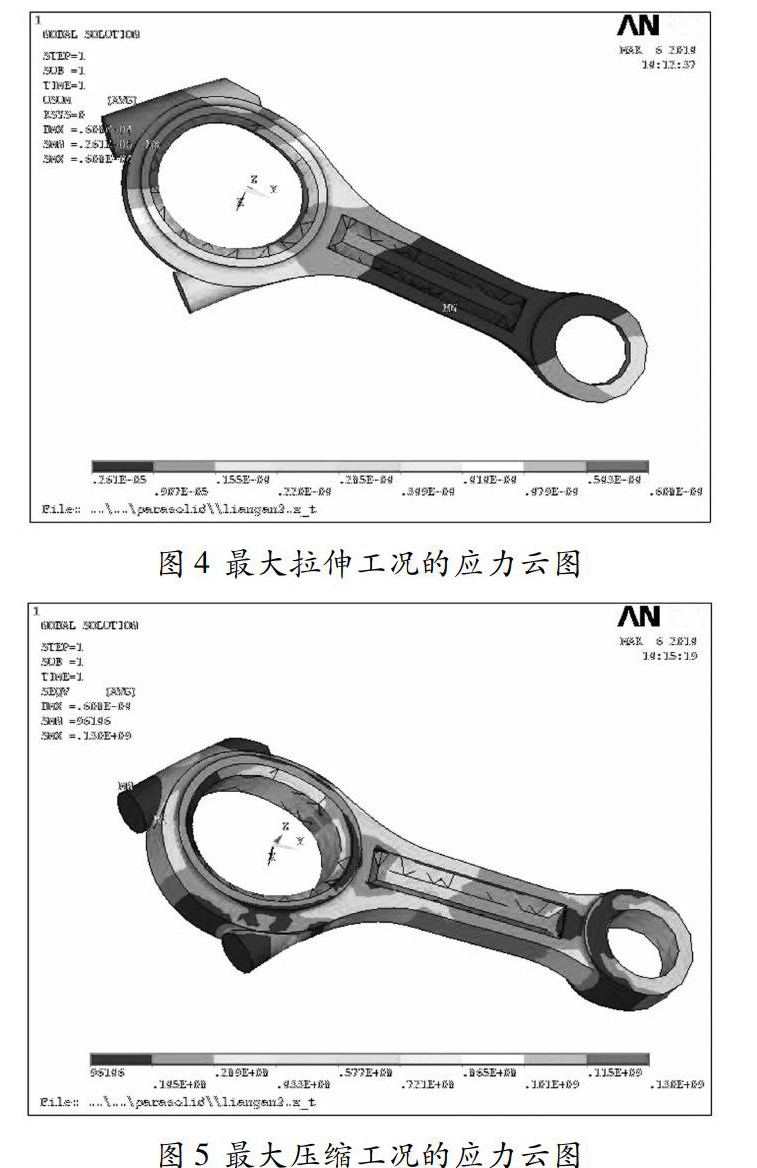 以某型发动机连杆为研究对象,对连杆进行了受力分析,确定了连杆两种工况的受力状态。然后利用UG三维软件建立了经过简化的发动机连杆有限元分析模型,在ANSYS仿真软件中进行有限元分析,分析结果得出了两种受力工况下的应力分布云图,验证连杆强度满足设计条件。