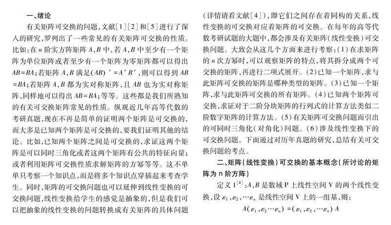 矩阵可交换问题及其在高等代数考研中的应用