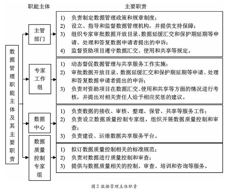 摘要:海洋科学数据是重要的战略资源,为了海洋环境监测预报数据管理与共享工作有制可依,需要有切实可行的海洋环境监测预报数据管理与共享服务机制。本文重点分析服务机制的主要内容包括各方主体分工职责、数据汇交与接收、数据质量控制、数据知识产权保护、奖惩措施和各环节处理时间节点等。明确各职能主体的职责和义务,注重数据的质量控制,确定数据的知识产权保护措施。为提升海洋环境监测预报数据共享与服务工作提供较为全面的制度保障。以期为海洋环境监测预报相关单位和人员规范化海洋科学数据管理与共享服务过程、制定与落实执行管理办法提供参考。