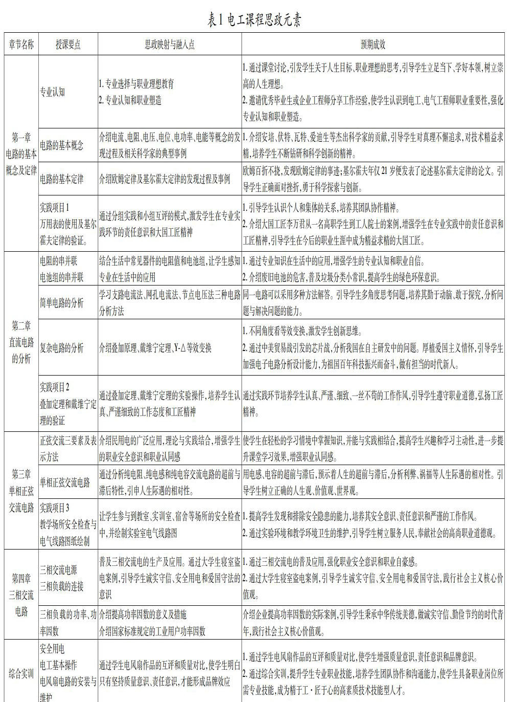 针对工科课程思政的隐蔽性特点,以《电工基础》课程为例,将思政教育融入教学全过程。课程团队从构建课程思政教学资源库,教学内容融入思政元素,改革课程考核标准和教学方法等方面入手,对学生进行技能和德育的双重教育,实现知识传授与价值引领的有机统一。