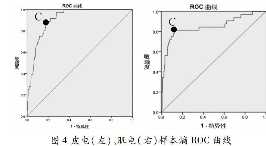 为获得客观而准确的驾驶疲劳判别阈值,基于穿戴设备采集了4小时模拟驾驶过程中的皮电、肌电和脑电信号,通过反应时间和脑电信号区分清醒与疲劳状态,计算不同状态下皮电肌电信号样本熵值,最后绘制ROC曲线确定清醒和疲劳之间的判别阈值。研究表明:皮电信号样本熵在疲劳状态下低于清醒状态,而肌电信号样本熵在疲劳状态下高于清醒状态,但变化规律不一致,可能与不同疲劳程度有关;皮电信号样本熵阈值为0.0197,准确率为0.91;肌电信号阈值为0.70185,准确率为0.85。