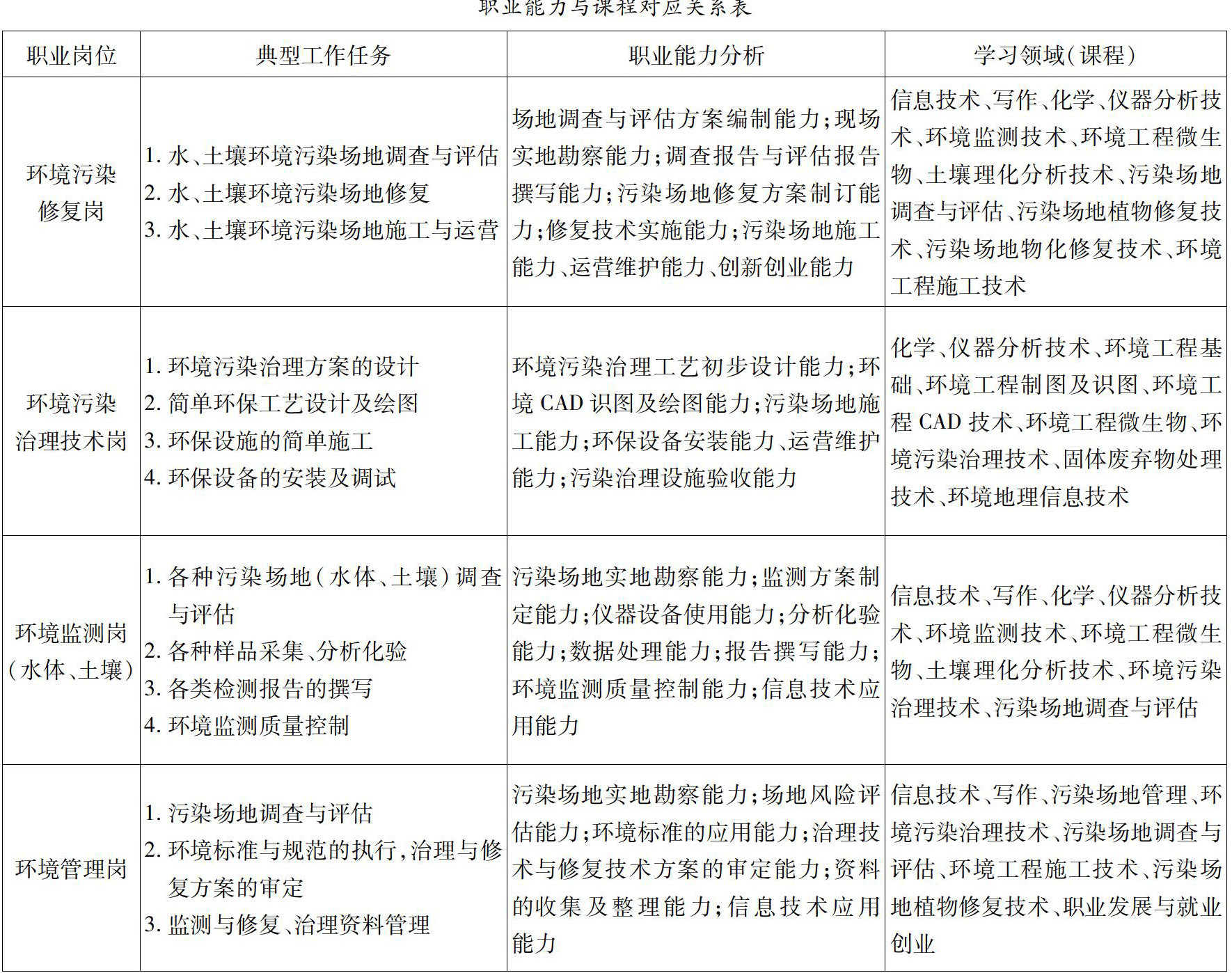 基于职业能力导向的污染修复与生态工程技术专业课程体系构建