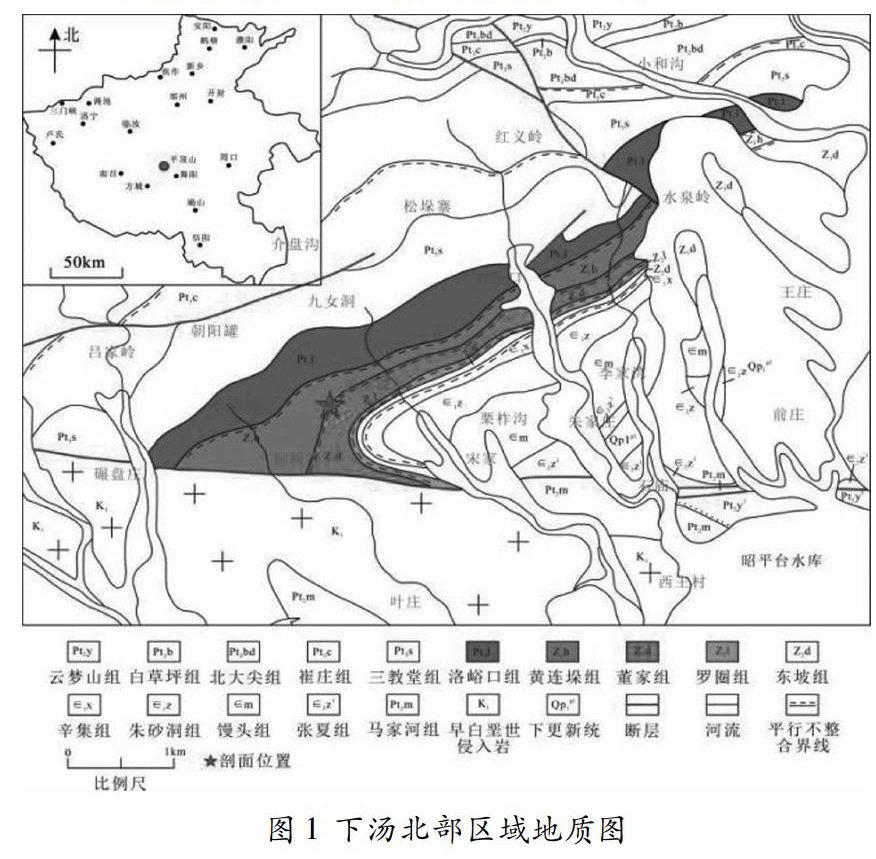 华北克拉通中—新元古代沉积盆地的充填过程可提供关键性沉积—构造演化信息,本次研究选取下汤地区中—新元古代黄连垛组和董家组沉积剖面,进行粒度分析、沉积环境分析等研究。华北南缘中元古代长城系(1.8—1.6Ga)沉积后期,构造活动后发育黄连垛组。岩性以砾岩—砂岩和硅质条带白云岩为主,发育于局限盆地下的潮汐通道—潮间坪;黄连垛组沉积结束之后,再次发生构造抬升,沉积董家组长石石英砂岩,发育于局限海的滨海相。粒度参数特征显示董家组沉积时期水平面升降变化,沉积于前滨—近滨。地壳再次抬升,罗圈组冰湖沉积。而上覆早古生代碎屑岩代表的是显生宙华北地台最早期海侵记录之一。