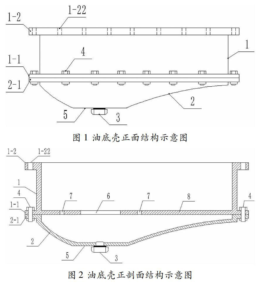 目前我们使用的一体式结构且带普通放油螺栓的油底壳,这种油底壳底部遇到碰撞产生变形或破裂时,都必须更换油底壳整体,同时普通放油螺栓不能很好地吸附各零部件摩擦产生的铁屑,使带有铁屑的机油循环往复进入油道,增大摩擦副,影响发动机零部件润滑效果进而缩短发动机使用寿命,为克服上述问题,延长机油使用寿命,降低发动机零部件磨损,本团队经过长时间研究,从实际出发研究了一款防止机油大幅震荡且能吸附杂质的冲压油底壳。