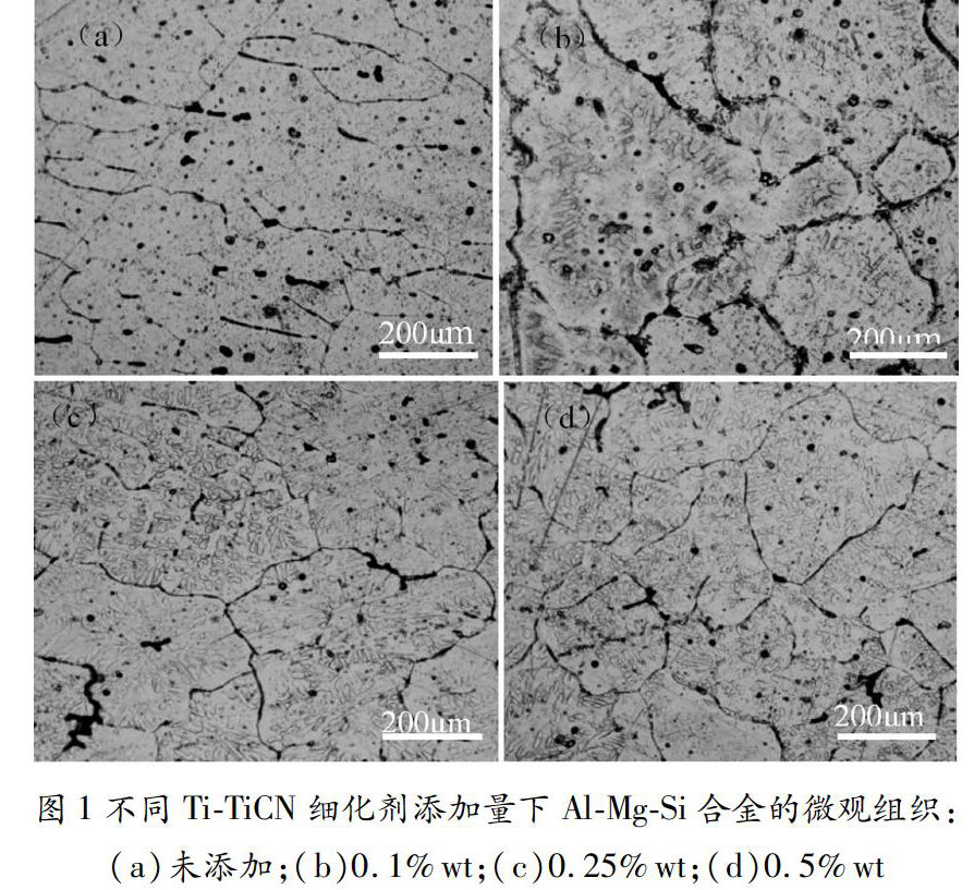 Ti-TiCN细化剂的含量对Al-Mg-Si合金组织和性能的影响