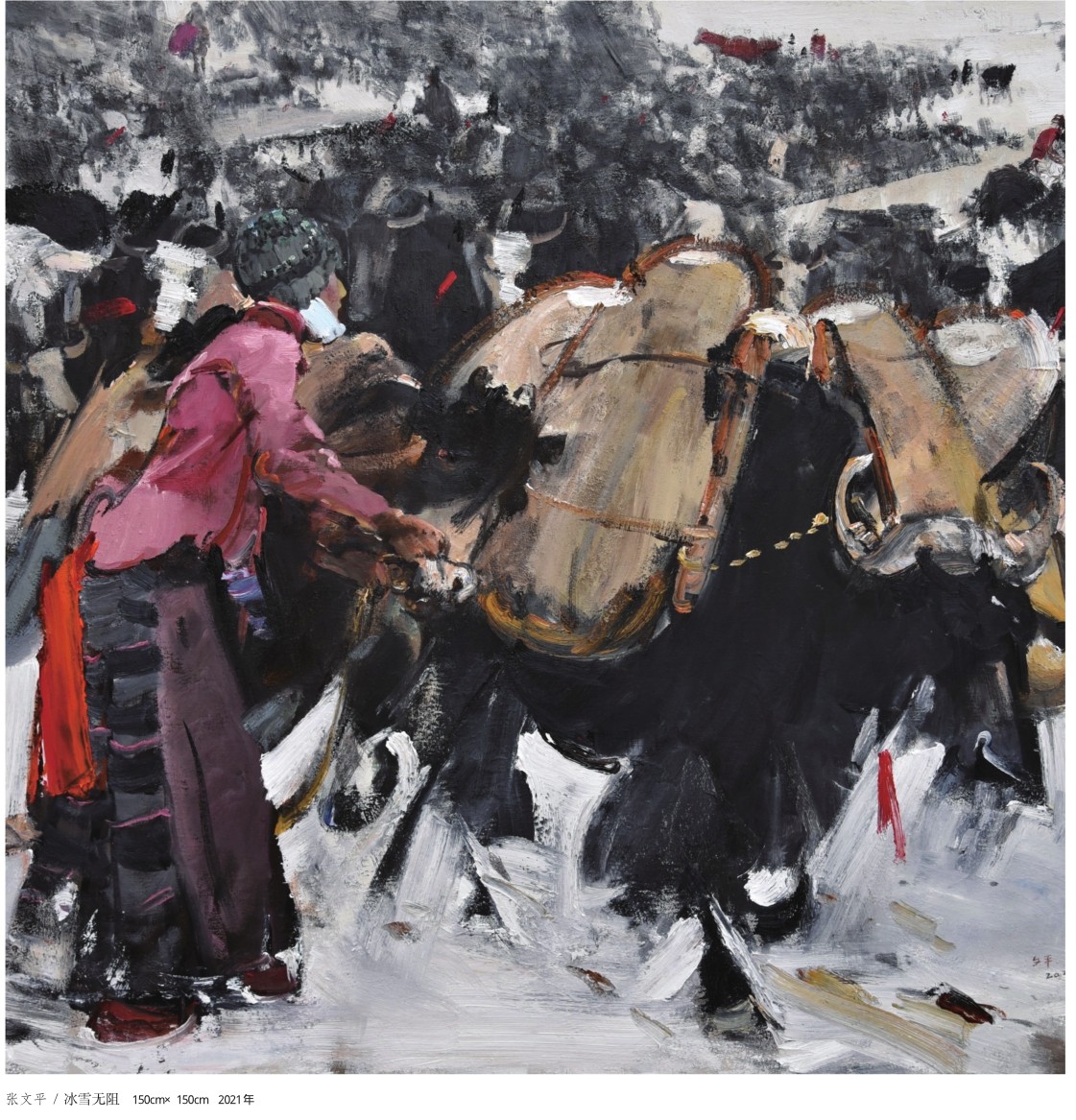 我的作品主要以三个方面为主:一是“高原魂”,重在表现青藏高原生生不息的人与自然;二是“黄土情”,主要表达生我养我的土地与人文环境;三是“江南意”,以江南遗留下来的古代建筑为素材,剖析明清时期江南建筑文化的内涵与特征以及对文化保护与传承的思考。 要谈创作感受,根据自己的体会,从形式语言、绘画题材、画法等方面去思考。对形式语言的确立,主要根据所表达的内容确定,从点、线、面和黑、白、灰以及色彩等方面不