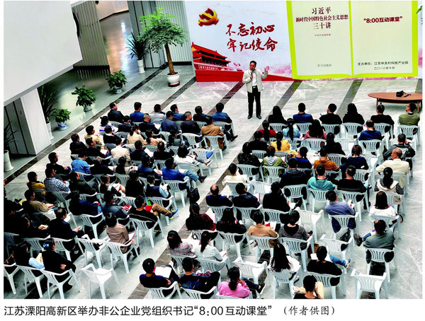 做好非公企业党建意义重大。党的十八大以来,习近平总书记多次作出重要指示批示,主持召开民营企业座谈会、企业家座谈会,给非公经济发展和非公企业党建工作指方向、强定力、增信心,为加强这一领域党建工作提供了根本遵循。近年来,溧阳市坚持“抓典型、做示范、促带动”,推进非公企业党建区域化协同、党务人才与企业发展契合、党建阵地线上线下结合、党建与业务工作融合,用不断的探索与实践证明,非公企业党建合力是引领企业高