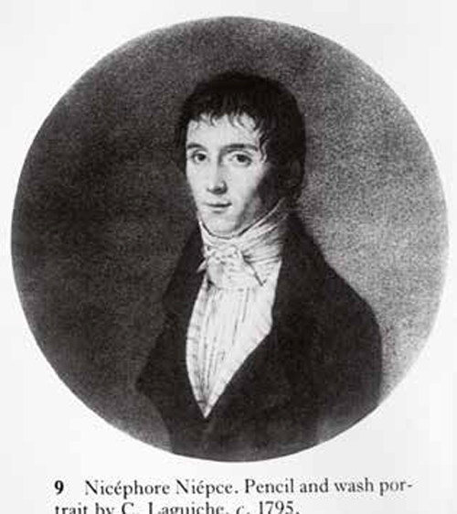 01:尼埃普斯肖像,画家拉圭契(C Laguiche)铅笔画,1795 年 如果你想一想摄影的整个历史,还有胶片和电视的发展,就会发现,它们都是从这第一张照片开始的。这张照片是所有这些技术的老祖宗,是源头。也正因如此,它才那么令人激动。 ——杜森·斯图里克( 美国盖蒂研究院文物保护科学家) 摄影术的第一发明者究竟是谁?一直以来都是个有争议的悬念问题。 在摄影术诞生近乎两个世纪之后,人们对于
