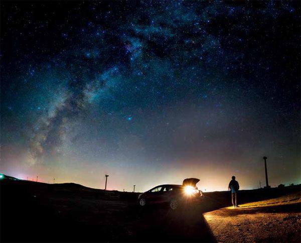 于海童 如果你准备开始第一次星空探索之旅,在了解天文和摄影的必备知识之前,请一定要注意自己的安全!理想的星空拍摄地夜间伸手不见五指,必须提前在白天踩点,否则别说在黑暗中难以寻找理想的机位,还很容易发生陷车、失足等意外。 北方秋冬的郊外、没有遮挡的山顶、西部的高海拔地区,这些拍摄星空的常见去处在夜晚经常有大风低温,请务必携带比你想象中更厚的保暖衣物(图2-3)。而南方的夏夜中,在林间和水边少不了