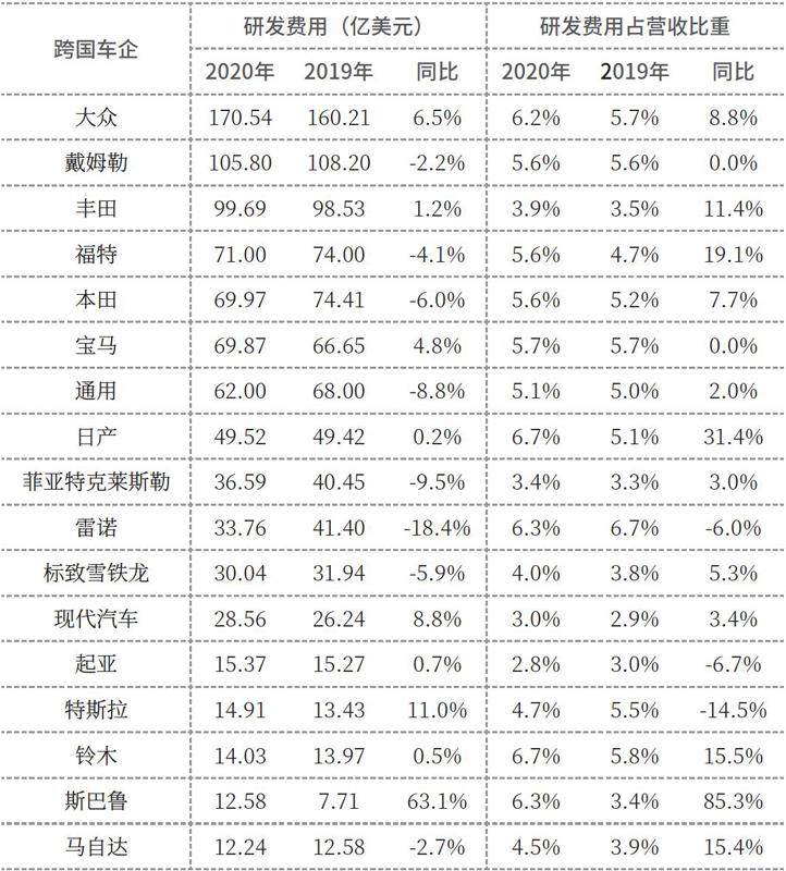 疫情之下跨国车企研发费用不降反升