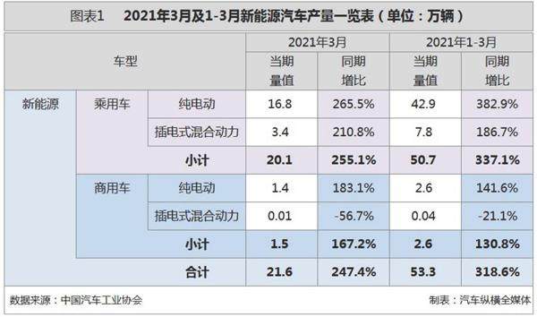 3月新能源汽车产销同比增幅逾两倍