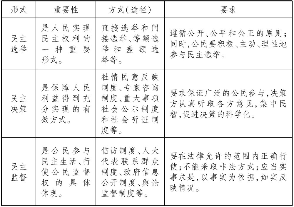 民主与法治是我国社会主义政治建设的两大目标和基本内容,两者相辅相成,不可分割。这部分知识内容重在让学生了解建立、健全监督和制约机制是法律有效实施和司法公正的保障。让学生通过学习,增强公民意识,学会行使自己享有的知情权、参与权、表达权、监督权,知道依法治国就是依照宪法和法律的规定管理国家,体会依法治国基本方略的实施有赖于每个公民的参与。 本单元通过讲述中国民主的本质、公民的民主参与、法治中国和法治