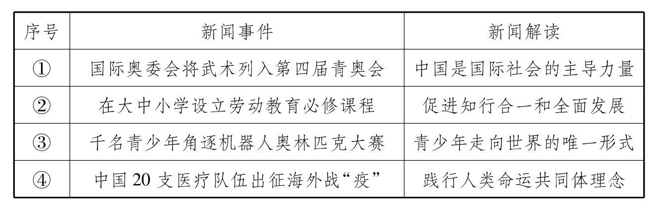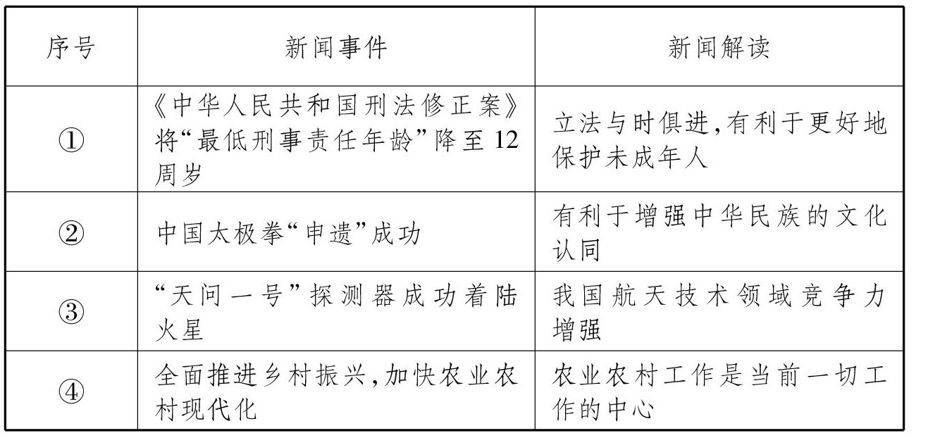 审辩式思维是一种判断命题是否为真或部分为真的方式,是一个审问、慎思、明辨、决断的过程。审辩式思维是21世纪人才必须具备的三种能力之一(另两种能力是口头和书面表达能力、逻辑推理能力)。它并非一味拒绝或否定他人的意见,而指对待问题应经过自己的思考,作出正确的判断。应用审辩式思维分析试题,能有效提高解题效率。笔者以几道例题为例浅谈审辩式思维在解答道德与法治试题中的应用。 例1.下列新闻事件与新闻解读相