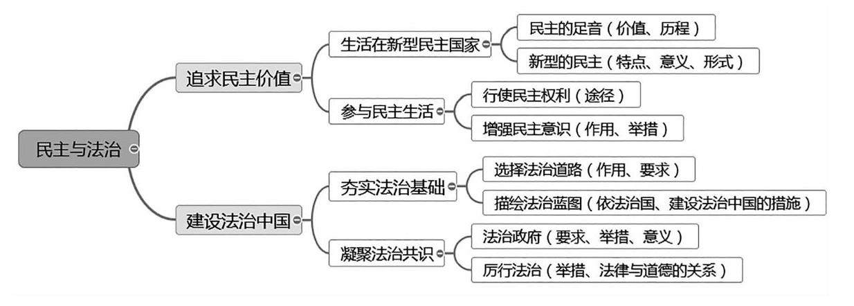 【内容概述】 《民主与法治》这一单元从民主价值追求和法治中国建设的视角,提出不断发展社会主义民主政治。推进社会主义民主发展,离不开法治保障;推进社会主义法治建设,需要建立在民主政治的基础上。民主当以人民利益为重,法治当以公平正义为念。人民不仅是民主法治的直接受益者,更应成为积极的参与者和有力的推动者。 【思维导图】 【重难点解析】 1.怎样理解社会主义民主? (1)我国社会主义民主是一种
