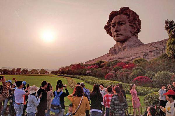 长沙橘子洲头是众多市民游客休闲旅游打卡地 湘江江心的橘子洲头,有一尊巨型革命领袖毛泽东青年面容塑像。“打卡”橘子洲头,跟“毛爷爷”来一张自拍,是现在许多年轻人“长沙攻略”上的第一项任务。 数据显示,不久前的“五一”假期,橘子洲景区游客接待量紧随岳麓山之后,位居湖南省第二。“五一”期间,由于预约参观量早已达到最大承载量,景区不得不严格执行“未预约不参观”的措施。 红色,是长沙耀眼的城市底色——
