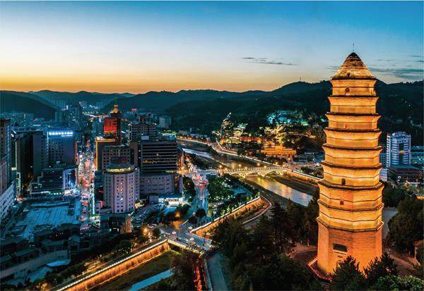 延安宝塔山和市区航拍 “夕阳照耀着山头的塔影,月色映照着河边的流萤,春风吹遍了坦平的原野,群山结成了坚固的屏障。啊,延安!”这首由郑律成谱曲的《延安颂》,曾回荡在红色圣地延安的上空,也激荡在许多爱国人士的心头。 在战火纷飞岁月,无数进步青年奔赴延安,巍巍宝塔山是他们的精神坐标;在救亡图存的年代,党中央在这里战斗13载,挽狂澜于既倒,宝塔山铭记着中国共产党革命光辉历程。 今朝,当清晨的阳光,洒