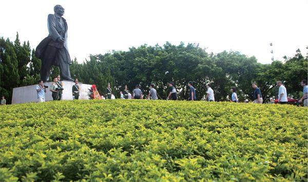 社会各界代表瞻仰邓小平同志塑像( 毛思倩/摄) 2021年5月28日,深圳巴士集团整装一新的50辆红色巴士,出现在深圳的街道上。 深圳人有个说法,这里的巴士比其他城市的跑得快,滚动的车轮就像在实践那句著名的口号:“时间就是金钱,效率就是生命。” 但这50辆红色巴士,却并不是追求速度的快车线。为庆祝中国共产党建党100周年,基于深圳原有的三条公交线,沿着三条红色主题线路,50辆巴士串联起东江纵