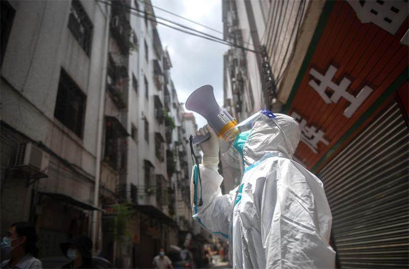6月15日,广州中南街海南村,穿着防护服的工作人员用大喇叭对着楼宇喊话,通知居民下楼做核酸检测 全球新冠疫情警报再次拉响。 当地时间6月25日,在世界卫生组织(WHO)举行的新冠肺炎例行发布会上,世卫组织总干事谭德塞表示,德尔塔(Delta)变异毒株是迄今为止发现的最易传播的新冠病毒变异毒株。 日前,德尔塔变异毒株已传播至全球近百个国家。我国也未能幸免,南部城市广州、深圳、东莞等地已陆续与“