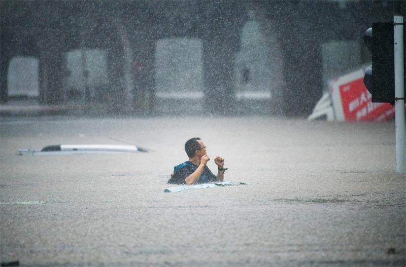 7月20日,郑州出现强降雨,郑州市东三环陇海路严重积水,车辆被淹没,有市民尝试游泳通过积水区域,由于水太深,最终未能成功(侯建勋/摄) 7月16日以来,河南持续遭遇强降雨,灾情肆虐,牵动人心。 习近平总书记对防汛救灾工作作出重要指示。他强调,当前已进入防汛关键期,各级领导干部要始终把保障人民群众生命财产安全放在第一位,身先士卒、靠前指挥,迅速组织力量防汛救灾,妥善安置受灾群众,严防次生灾害,最