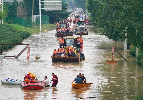 7月22日,京港澳高速(郑州)惠民三路交叉口附近,救生艇、铲车等齐上阵,转移附近被困群众(马健/摄) 河南省灾情牵动着党中央的心。习近平总书记对防汛救灾工作作出重要指示,要求在做好防汛救灾工作的同时,尽快恢复生产生活秩序,扎实做好受灾群众帮扶救助和卫生防疫工作,防止因灾返贫和“大灾之后有大疫”。 灾情发生以来,河南省委书记楼阳生、省长王凯多次到省防汛抗旱指挥部召开会商会、调度会,要求全力维护公