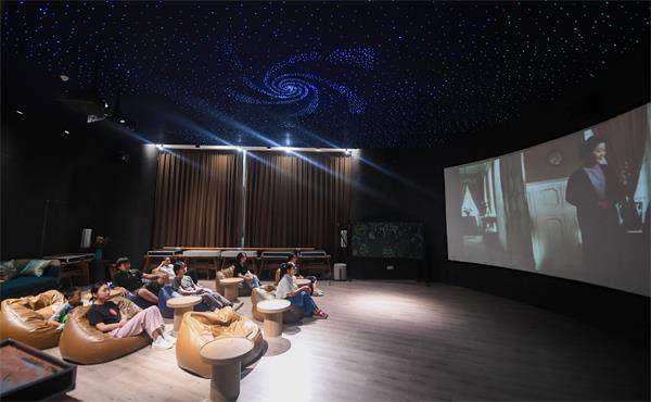 居民在位于浙江省杭州市富阳区银湖街道硅谷社区的“合之舍”书房的影视厅观看电影,该书房是银湖街道“15分钟品质文化生活圈”的示范点位(徐昱 / 摄) 作为传世名画《富春山居图》的原创地、实景地,杭州富阳自古以来就是无数文人墨客的理想栖居地。自2020年首次获评“中国最具幸福感城区”以来,杭州市富阳区连续四年获此殊荣。 富阳,城如其名,“生活富裕,生命阳光”不仅是城市品牌,更是生活在这里人们的共同