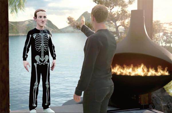 10月28日,美国脸书公司首席执行官马克·扎克伯格在线上举办的脸书大会上与虚拟现实空间中的“自己”互动 美国《时代周刊》近期的封面人物,是美国社交媒体巨头脸书(Facebook)创始人扎克伯格。 封面上,他的脸被调成略为惊悚的淡紫色,眼神里透出一丝绝望。面孔之上,一个弹出框上写着:“删除脸书?”下面两个选择是:“放弃/删除”。 按照美国媒体的说法,脸书因不断选择将牟取巨额利润置于社会公共利益