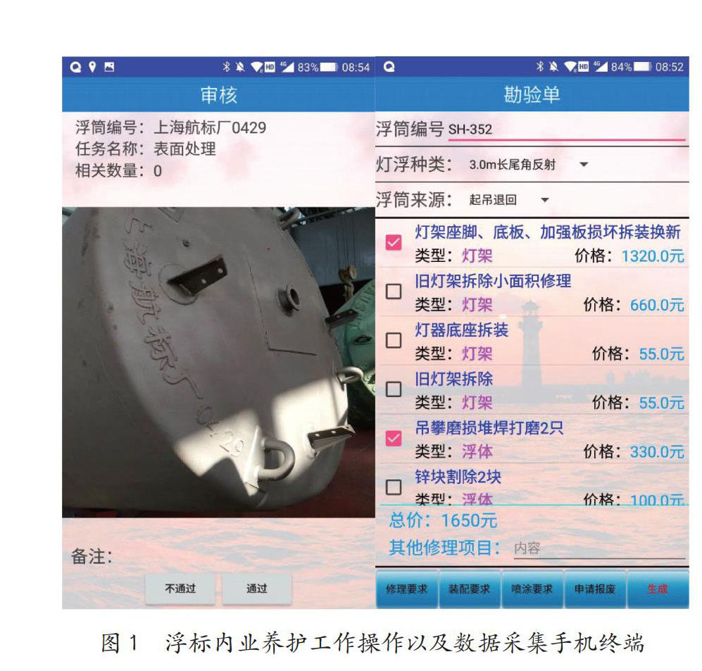 摘 要:近年来,在浮标养护采用社会化服务后,浮标养护管理工作遇到了一些问题,主要包括养护项目勘验和质量验收采用手工填报报表,准确性、及时性和可追溯性较差。由于养护地点分散、养护质量验收环节多、浮标周转频率高等特点,养护管理一般采用工厂自检和管理人员抽检的方式,无法确保养护质量监督,同时给后期养护费用审核结算带来麻烦。上海航标处研究开发了浮标内业养护信息系统APP并在浮标养护中全程应用,有效解决了