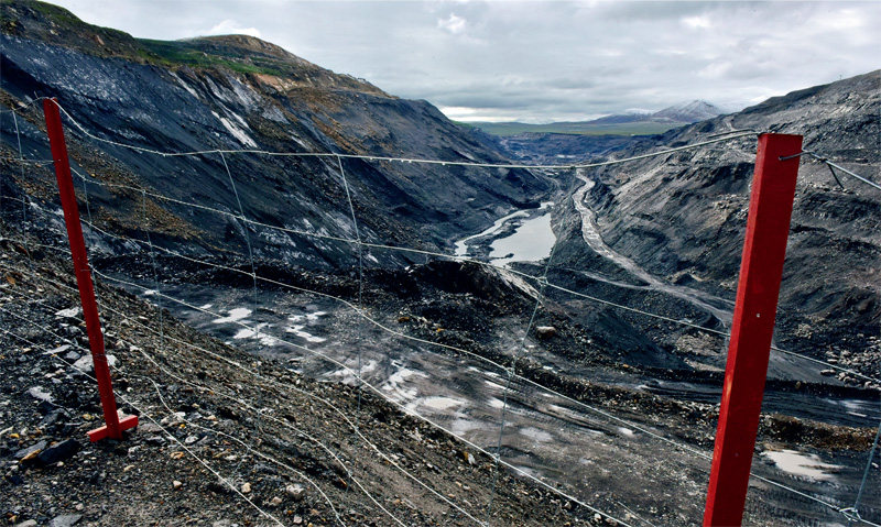 从空中俯瞰,木里矿区如果是蚁巢,矿车则是工蚁,源源不断地从青海各地运回羊板粪。 “我还从来没见过这样的景象,这么多大矿车直接穿越草场,进入牧民家里拉羊粪。”王强告诉《中国新闻周刊》,7年前,他从陕西来到青海木里煤田,通过合伙的方式先后购买了几十辆运煤车。但如今,拉煤车变身拉粪车,几十辆运煤车不再运煤,开始运羊板粪,参与木里矿区生态修复。 2020年8月14日,青海木里矿区的聚乎更矿区五号井。图