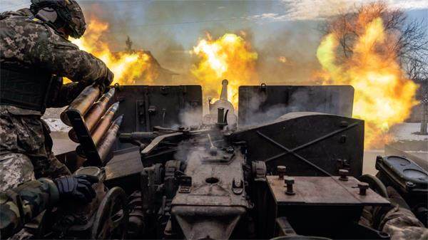 4月2日,巴赫穆特地区,俄乌冲突持续,乌克兰军人在前线附近发射炮弹。图/澎湃影像 “现在是4月2日夜23时,我身后是阿尔乔莫夫斯克市政厅大楼。”夜视镜头中,俄罗斯瓦格纳雇佣军集团领导人普里戈津指着一面升上大楼的俄罗斯国旗说道。他口中的“阿尔乔莫夫斯克”,就是乌克兰顿涅茨克州东北重镇巴赫穆特。 2023年4月2日夜,俄罗斯方面消息称,俄军已基本占领巴赫穆特中心地区。乌克兰军方次日表示,这只是俄