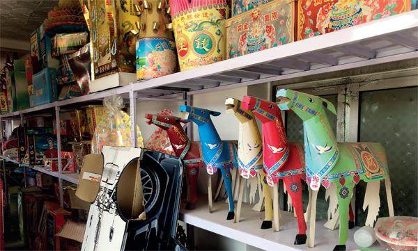 米北庄村市场街一家店铺内陈列的殡葬用品。摄影/本刊记者 胡克非 北京向南100公里,在津雄高速雄县东出口外不远的地方,便是有“中国殡葬第一村”之称的保定雄县米北庄村。 米北庄村之所以出名,是因为这里有条名为市场街的街道。在这条约一公里长的街道两侧,分布着上百多家殡葬产业相关的店铺,从绢花、纸钱到花圈、寿衣、寿盒,应有尽有。 每逢农历三、五、八、十,市场街都会有集市,来自全国各地的批发商和零售
