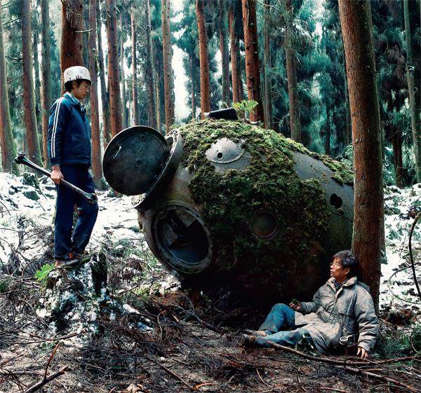 《宇宙探索编辑部》剧照:孙一通与唐志军(右)。 1981年7月24日,一个普通的夏夜,忍受着暑热的人们正在月影下享受一天中难得的清凉。然而当时钟行至22点30分的那一刻,天空中的一道亮光却打破了原本的寻常与平静。起初,那是一个闪耀着白色晕影的光点,而后开始慢慢逆时针旋转,沿中心拖尾出一条光束,一圈一圈向外漾开,形成一个精致的螺旋体,比一个礼拜前的那轮满月还要大、还要亮。与此同时,这个巨大的螺旋体
