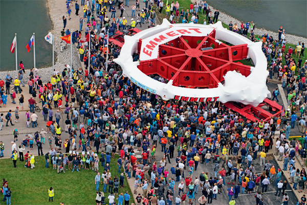 停在码头的巨型超导铁磁环。图/费米实验室 这是一场跨越5000多公里的漫长又小心翼翼的旅行——6月24日,从纽约长岛出发,先是沿着美国东海岸向南到达佛罗里达的顶角,然后进入墨西哥湾,这就花了一个月,然后沿着田纳西-汤比格比水路向上进入密西西比河,伊利诺伊河和德斯普兰斯河,在7月20日到达伊利诺伊州的港口。一辆经过特殊改造过的卡车已经等候在码头,7月26日凌晨4时7分,在美国费米国家加速器实验室门