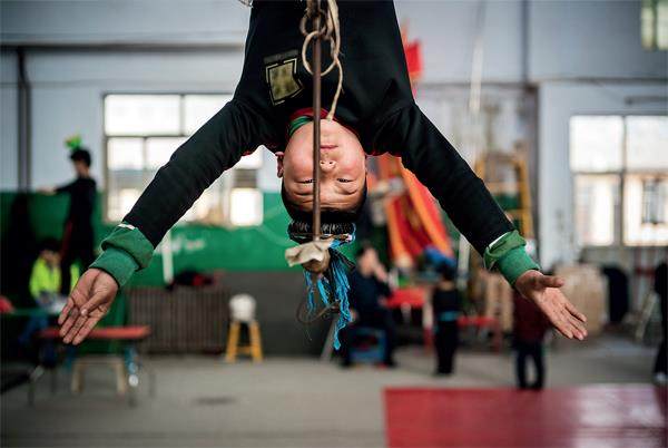 2019年3月,在吴桥县一个杂技培训中心训练的学员。图/IC “集体出走事件”已经过去一周多,5月中旬,15岁的华子重新回到学校。他穿着簇新的红黄相间的初中校服,参加了三门考试,英语、历史和政治,很多题都不会做。考试前,老师特意安慰他,“能做的尽量做,做不了就慢慢来”。 5月1日,“以他为首”的4名吴桥杂技少年在成都演出期间,集体出走失联。四人中,华子15岁年龄最大,弟弟强子12岁,小鑫14岁