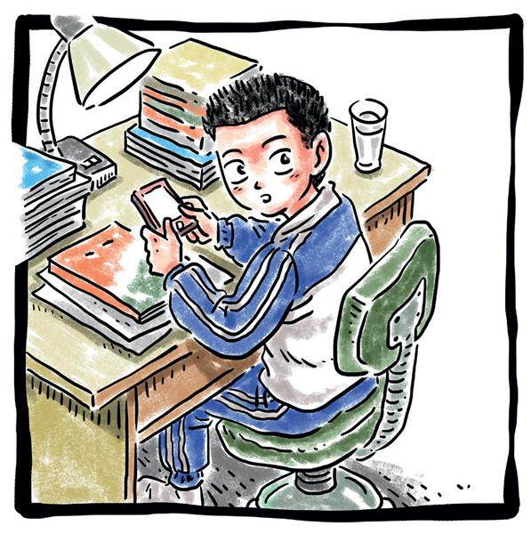 头几年流行一首歌,其中反复吟咏的两句是“放下手机,放下手机”。那时候我儿子上小学三四年级,他每天都要对着他妈大声唱,抗议他妈不放下手机和他一起玩儿。 而今,儿子已是初中学生,也有了自己的手机。他早已经忘记了这首歌,或者是佯装忘记了。老师搞了一个问卷调查,让大家填写在家用手机玩游戏的时间,他填的是二十分钟。 我总感觉他的汇报有些保守,至于保守的程度,我实在说不清楚。如果你发现他在盯着自己的手机,