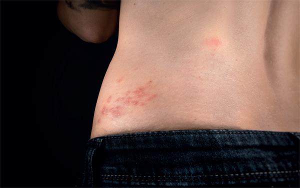 带状疱疹所引起的水疱常见于腰部,因此带状疱疹也俗称为“缠腰龙”“蛇缠腰”。 眼球像在被火烧灼,干涩、畏光,无法长时间看东西……26岁那年,长期上夜班后的一天,吴卓的左眼突然疼痛。随后几天,痛感加剧,并从左眼蔓延至左太阳穴周围,即使吃了止疼药,他还是会在半夜被疼醒。疼痛最严重时,他甚至产生过轻生的念头。 症状出现第五天,他的左额头、左眼上方冒出成簇透明小水泡,连成一片,之后,他被确诊为带状疱疹。