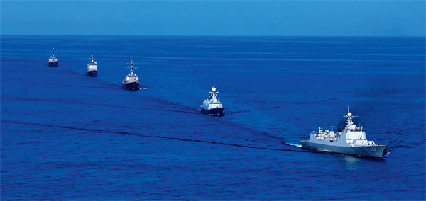 2015年11月7日,刚刚结束对美国友好访问的中国海军152舰艇编队导弹驱逐舰济南舰、导弹护卫舰益阳舰和综合补给舰千岛湖舰,与美国海军伯克级导弹驱逐舰“梅森”号、“斯托克”号和提康德罗加级导弹巡洋舰“蒙特里”号在美国梅波特港东南海域举行联合演练。图/新华 当前,中美关系正面临自1979年建交以来前所未有的挑战。中美关系的走向不仅影响中美两国各自的发展,也影响世界的未来。本文中,我想提出以下三点看