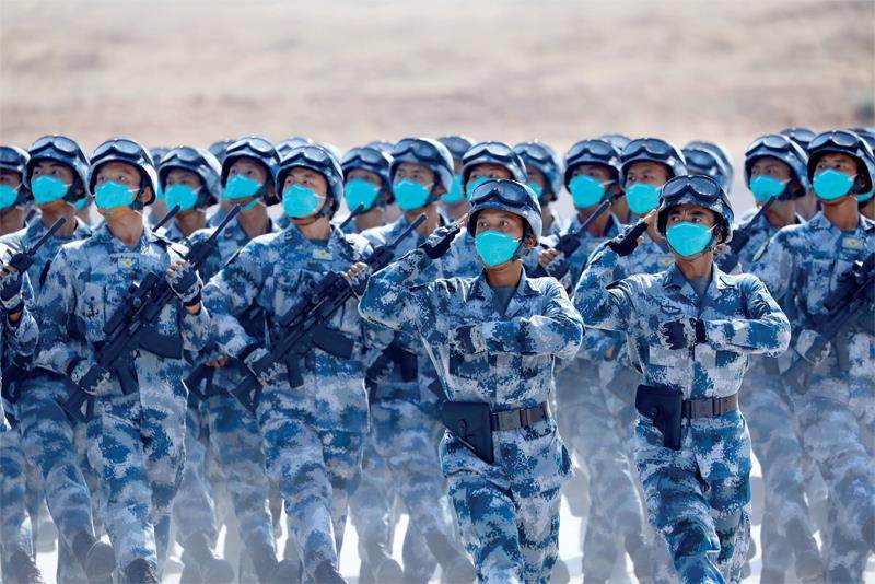8月13日,在演习结束仪式分列式上的空军空降兵方队。8月9日,中饿两目军队“西部·联合-2021”演习在宁夏某合同战术训练基地拉开帷幕。图/新华