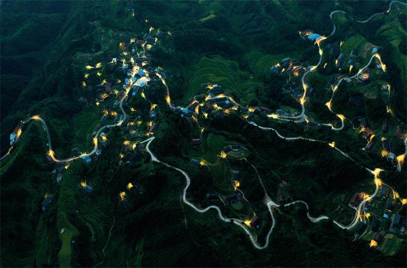 广西融水苗族自治县杆洞乡党鸠村夜景。随着乡村振兴战略的实施,广西大石山压的千山万弄里竖起一盏盏太阳能路灯。图/新华 劳作 9月6日,阿富汗坎大哈,当地农民将葡萄放在地上晾晒,制作葡萄干。图/视觉中国