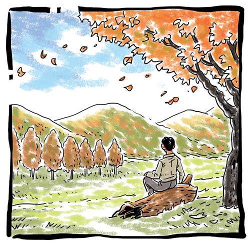 去附近的大青山,看望久已不见的秋天的树木。 夏天来的时候,这里风起云涌,气象万千,树木浩浩荡荡,在风中发出呐喊。今天再去,一切都变得开阔寂静,色彩分明。地上除了厚厚的松针、遍洒的松果、鸟粪,更多的是踩上去窸窣有声的落叶。一只俊美的喜鹊,踏着松软的落叶跳跃着向前。阳光透过清癯的枝干洒落下来,喜鹊额头一小片白色的羽毛,宛若耀眼的宝石,在秋天微凉的风里光芒闪烁。 夏天枯死的树木,被就地砍下做成木凳,