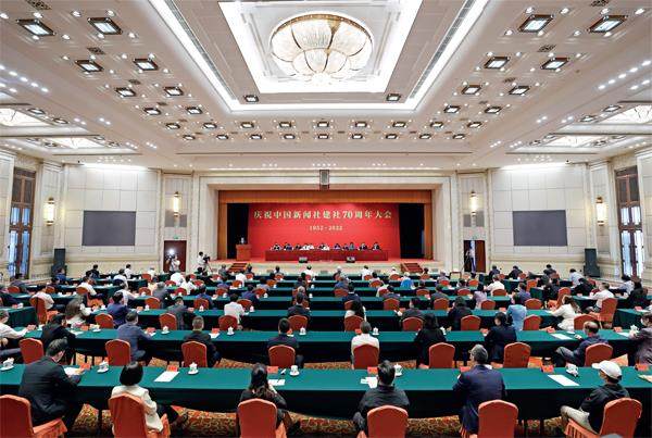9月23日上午,庆祝中国新闻社建社70周年大会在北京举行。摄影/中新社记者 富田 9月23日上午,北京西城区,一场引人瞩目的庆祝大会正在举行,大会持续了一个小时,现场简朴而又热烈。 这是庆祝中国新闻社建社70周年大会。从1952年到2022年,这家以服务侨胞为出发点的通讯社已经走过了70年,从成立之初的47人,发展为在境内外拥有52个分社、有一支2000多人的专业人才队伍、在海内外拥有巨大影响
