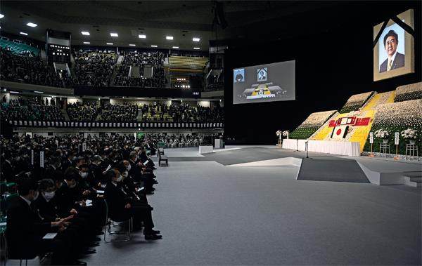 9月27日,在日本东京的安倍晋三国葬现场。图/视觉中国 9月27日,东京千代田区的日本武道馆,在数百民众的激烈抗议声中,日本前首相安倍晋三的国葬如期而至。 81天前,安倍在奈良的一场竞选活动中,当街遭遇枪击身亡。事件发生最初,日本公众最大的感受是对安倍遇袭身亡的震惊,以及对政府安保的不信任和愤怒。但当“安倍派”的执政党政客与宗教团体“统一教”的关联浮出水面后,怒火逐渐向安倍长期执政的自民党和国