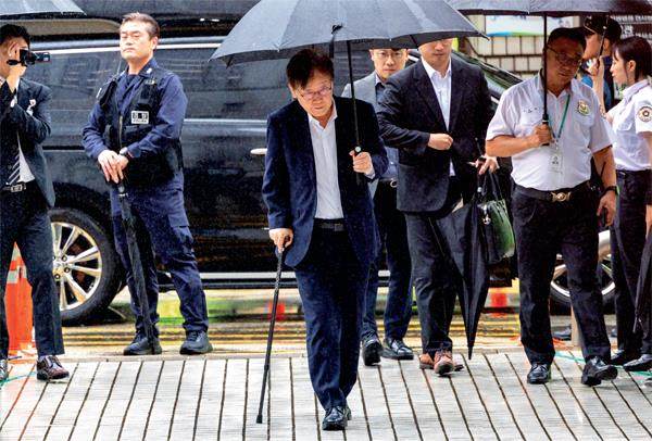 9月26日,韩国首尔中央地方法院,韩国共同民主党党首李在明拄着拐杖走向法庭。 当地时间2023年9月26日上午10时许,韩国最大在野党共同民主党党首李在明在支持者的呐喊声中进入首尔中央地方法院。雨中,59岁的他面色苍白,未戴领带,拄着拐杖,颤颤巍巍。虽然特意将白发染黑,依然难掩虚弱。 三天前的9月23日,在医院方面的“强烈建议”下,李在明决定停止自8月31日开始的“无限期绝食”。这也意味着他超