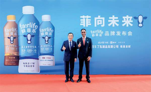 蒙牛总裁卢敏放(左)与可口可乐大中华及蒙古区总裁闻笛共同发布鲜菲乐。 后疫情时代,国民对营养健康的关注保持了快速提升态势。在饮食方面,今天的中国人已不再满足于吃饱、吃好,更追求能够提升免疫力,追求低糖、低脂、高蛋白,追求符合自身需求的个性化营养。这一趋势,已经明显地映射在消费中。据国内主要电商平台相关报告显示,今年“618”购物节期间,有近70%的消费者购买了保健品、滋补品等各类功能性食品。国民