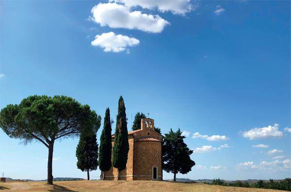 Cappella della Madonna di Vitaleta圣母教堂 多年前做学生时穷游过意大利,那时只能去火车能抵达的大城小镇。虽然参观了罗马、佛罗伦萨、比萨斜塔和西西里的庞贝古城,依然觉得是一次很走马观花的游客之行。 一直想重游托斯卡纳,去托斯卡纳的乡村。 托斯卡纳是很多电影和文学作品描述过的地方,似乎已经成为了一种符号性的存在。但看过贝尔托鲁奇的《偷香》之后,还是特别想开着车去