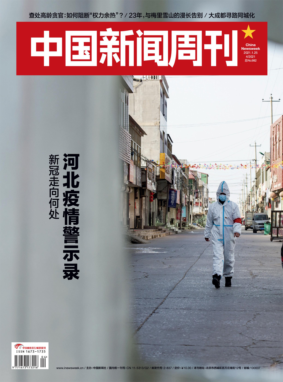 1月11日,河北石家庄藁市城区,一名疫情防控志愿者在小果庄村内巡视。摄影/本刊记者候宇 参加完远房表亲的婚礼,家住石家庄正定国际机场附近小果庄村的田桂蓉就开始咳嗽,起初她和家人都没在意,以为是小感冒,吃点药就好了。五天后,1月2日凌晨4时,61岁的她感到发冷、胸闷,伴有咳嗽、咳痰,体温达到38.7℃。 在新冠疫情从未远去的特殊时期,发烧可不是小事。当天凌晨5点,田桂蓉儿子开车1个多小时把她送到
